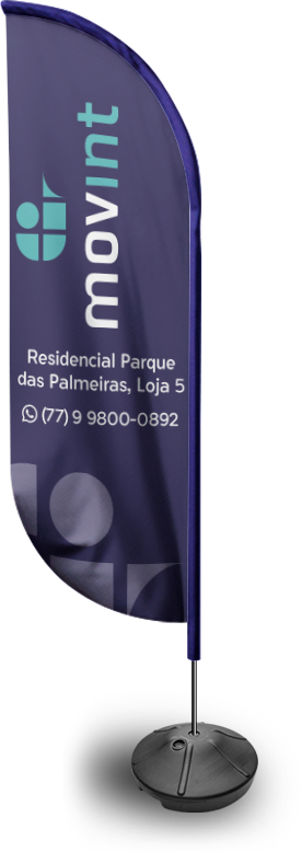 Trabalhamos com wind banners, bandeiras, flâmulas e peças promocionais, desenvolvidos com materiais resistentes, estampas vibrantes e acabamento de alta qualidade.